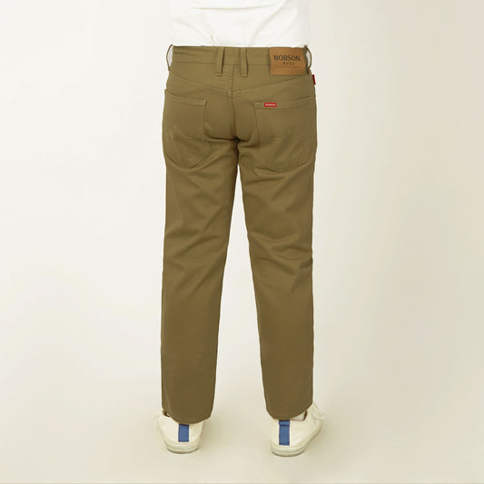 Bobson Japanese Men's Basic Denim Pants Skinny Mid Waist 175372 (Khaki)