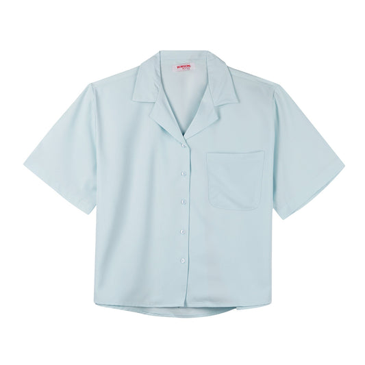 Bobson Japanese Ladies Basic Woven Shirt Boxy Fit 144255 (Blue Glow)