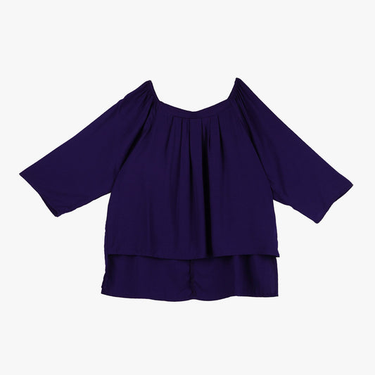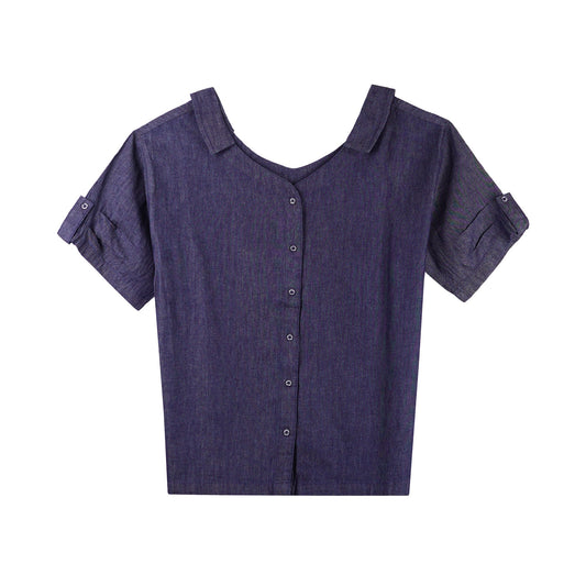 Bobson Japanese Ladies Basic Woven Blouse Relaxed Fit 143973 (Dark Wash)
