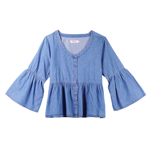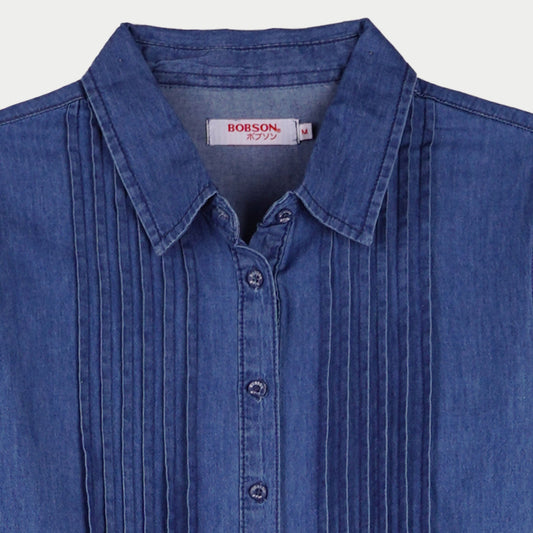 Bobson Japanese Ladies Basic Woven Blouse Regular Fit 142734 (Medium Wash)