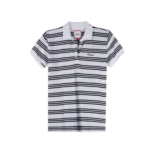 Bobson Japanese Ladies Basic Striped Collared Shirt Regular Fit 133035 (White)