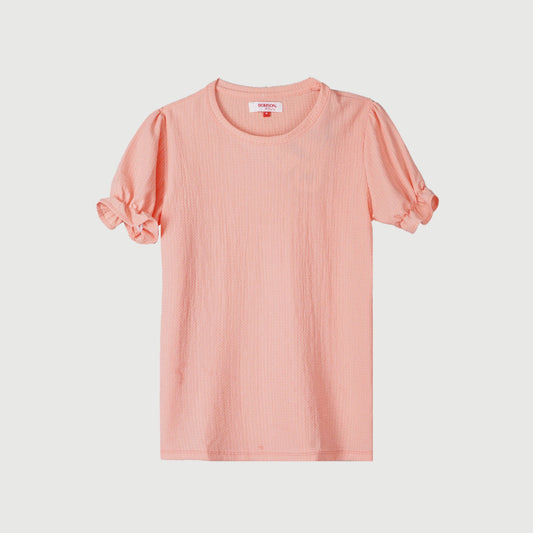 Bobson Japanese Ladies Basic Tees Garterized Sleeves Trendy Fashion High Quality Apparel Comfortable Casual Blouse for Women Regular Fit 140104 (Pink)