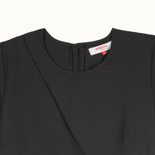 Bobson Japanese Ladies Basic Dress for Women Trendy Fashion High Quality Apparel Comfortable Casual Dress Regular Fit 142350 (Black)
