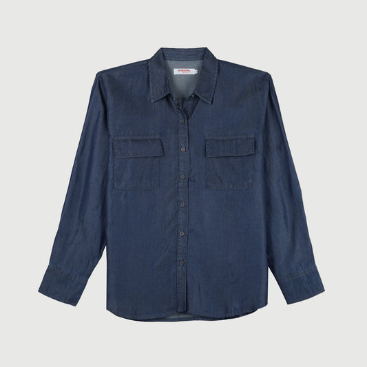 Bobson Japanese Ladies Basic Woven Long sleeve shirt for Women Trendy Fashion High Quality Apparel Comfortable Casual Top for Women Loose Fit 131534 (Dark Shade)