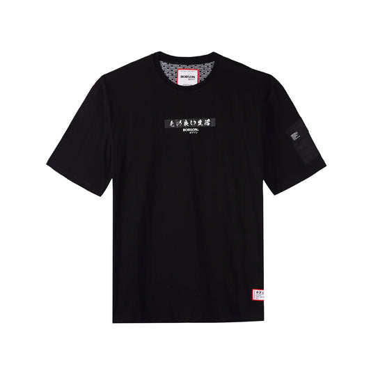 Bobson Japanese Men's Basic Tees for Men Trendy Fashion High Quality Apparel Comfortable Casual Tops for Men Oversized 144947 (Black)