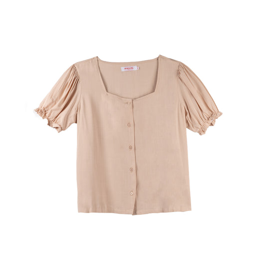 Bobson Japanese Ladies Basic Woven Shirt Boxy Fit 151852 (Beige)