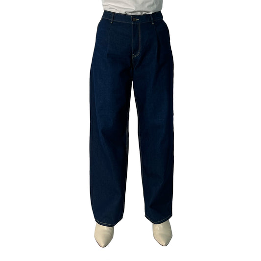 Bobson Japanese Ladies Basic Denim Pants Pleated Jeans 175244 (Dark Shade)