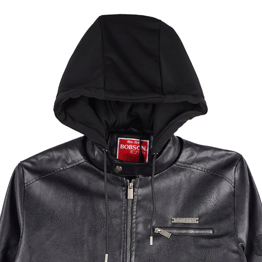 Bobson Japanese Men's Basic Leather Hoodie Jacket Regular Fit 161799 (Black)