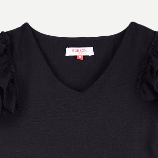 Bobson Japanese Ladies Basic Woven Shirt Boxy Fit 158209-U (Black)