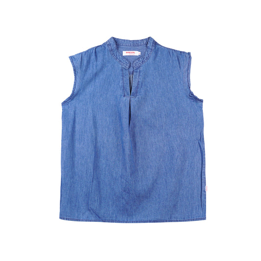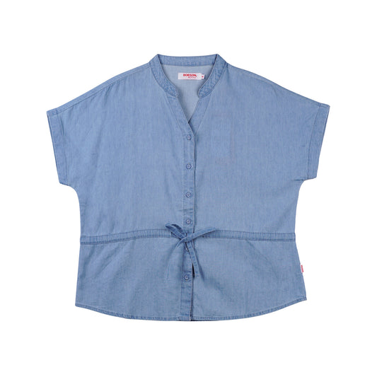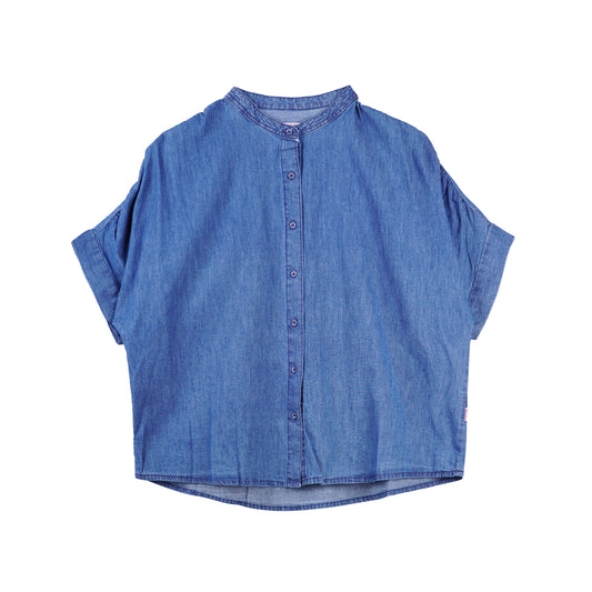 Bobson Japanese Ladies Basic Woven Shirt Relaxed Fit 154630 (Medium Wash)