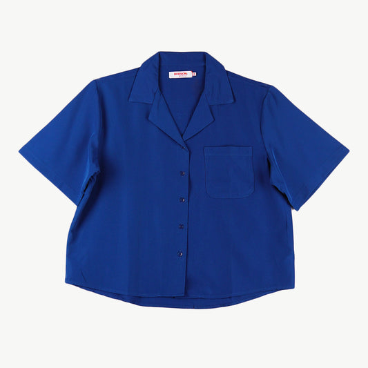 Bobson Japanese Ladies Basic Woven Shirt Button Down Boxy Fit 144239 (Poseidon)