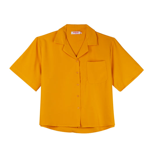 Bobson Japanese Ladies Basic Woven Shirt Button Down Boxy Fit 144239 (Yellow Gold)