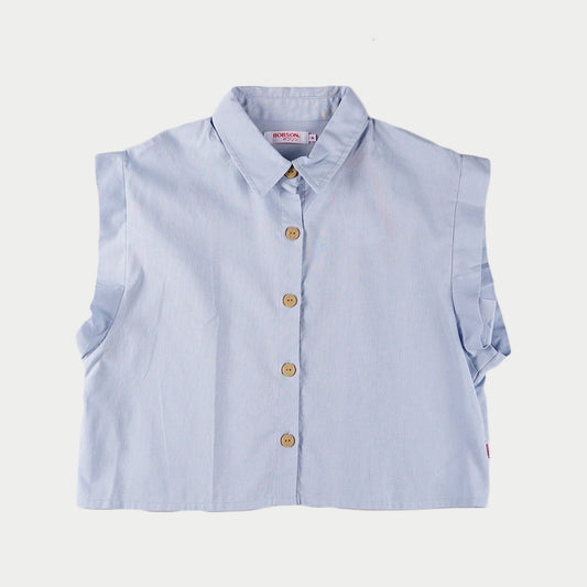 Bobson Japanese Ladies Basic Woven Shirt Boxy Fit 155986 (Blue)