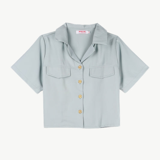 Bobson Japanese Ladies Basic Button Down Woven Shirt Boxy Fit 158282 (Light Green)