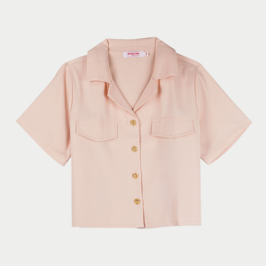 Bobson Japanese Ladies Basic Button Down Woven Shirt Boxy Fit 158282 (Coral)