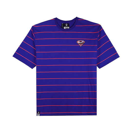 Stylistic Mr. Lee X Justice League Superman Logo Striped Men's Basic Tees Oversized Fit 132788 (Dark Blue)