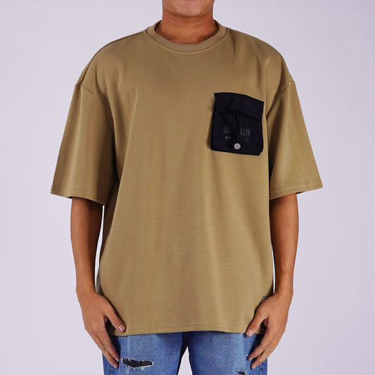 Petrol x Justice League Men's Basic Tees Oversized Fitting Interlock Fabric 163129 (Khaki)