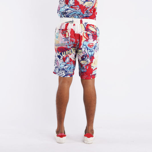Stylistic Mr. Lee Men's X Justice League Superman All Over Print Basic Non-Denim Jogger Short for Men Trendy Fashion High Quality Apparel Comfortable Casual short for Men 132063 (Red)