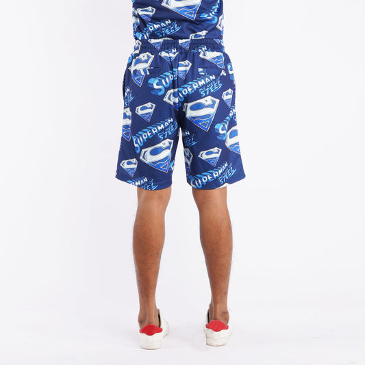 Stylistic Mr. Lee Men's X Justice League The Man of Steel All Over Print Basic Non-Denim Jogger Short Trendy Fashion High Quality Apparel Comfortable Casual Short for Men Mid Waist 132058 (Navy)