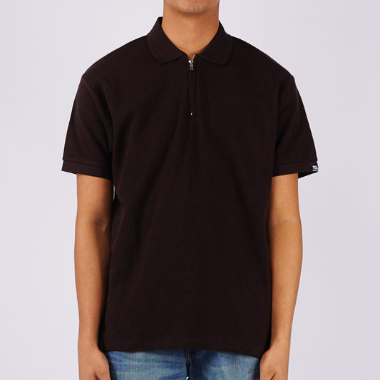Petrol Basic Collared Slim Fitting Waffle Fabric 159167 (Choco Brown)