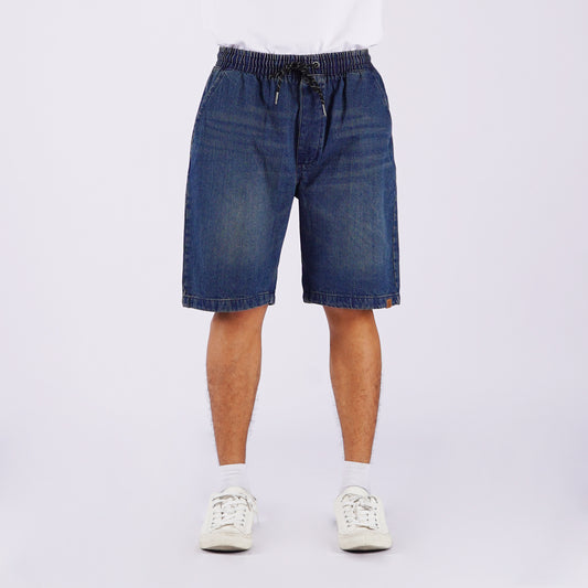 RRJ Men's Basic Denim Jogger Short Mid-Rise Rinse Wash Fabric 165583-U (Dark Shade)