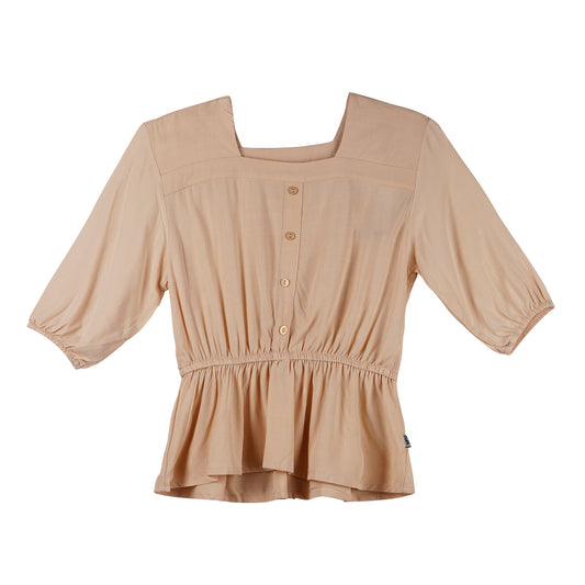 Stylistic Mr. Lee Ladies Basic Plain Dress 3/4 Puff Sleeve for Women Trendy Fashion High Quality Apparel Comfortable Casual Dress for Women Loose Fit 147572 (Beige)