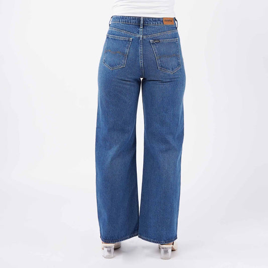 RRJ Ladies Basic Denim Wideleg Pants Mid-Rise 184623 (Medium Shade)