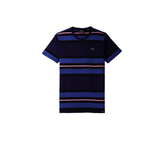 RRJ Men's Basic Tees Semibody Fitting CVC Jersey with Spandex 144403 (Navy)