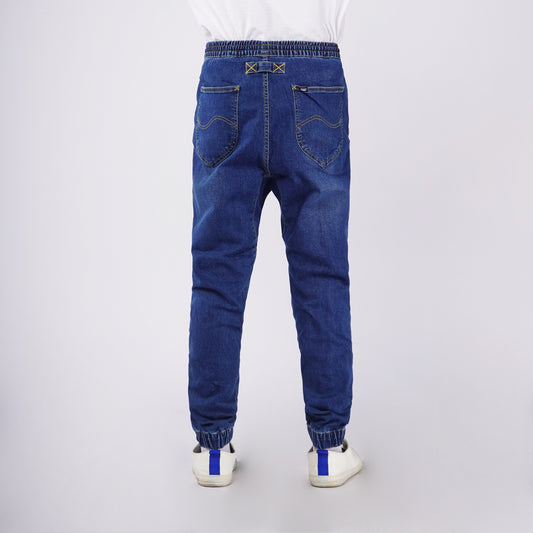 Bobson Japanese Men's Basic Denim Jogger Jeans Mid Waist 166273 (Dark Shade)