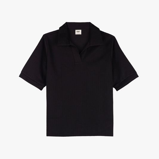 RRJ Ladies Basic Collared Regular Fitting Missed Lycra Fabric 121396 (Black)