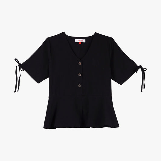 Bobson Japanese Ladies Basic Woven Shirt Boxy Fit 139758 (Black)