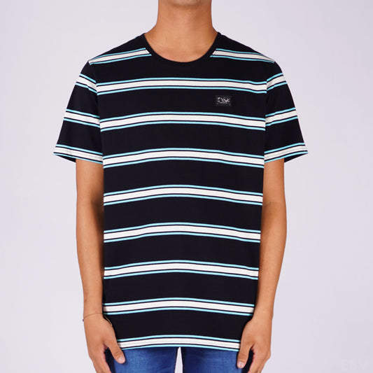 Petrol Men's Basic Tees Slim Fitting Stripe Jersey Fabric 161848 (Black)
