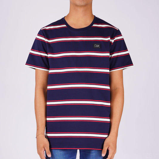 Petrol Men's Basic Tees Slim Fitting Stripe Jersey Fabric 161848 (Navy)