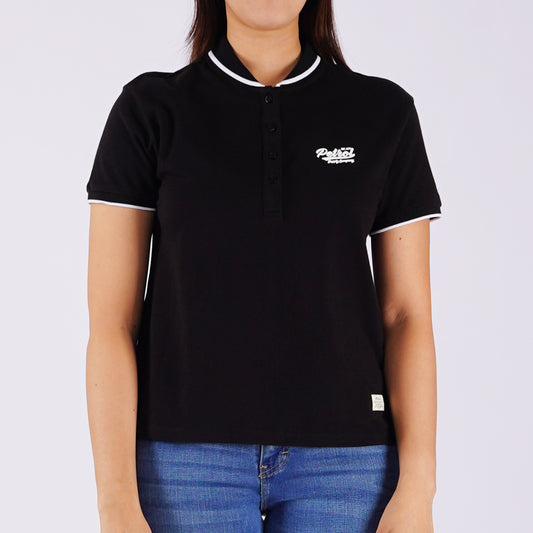 Petrol Ladies Basic Collared Shirt Boxy Fitting Lacoste Fabric 129129 (Black)