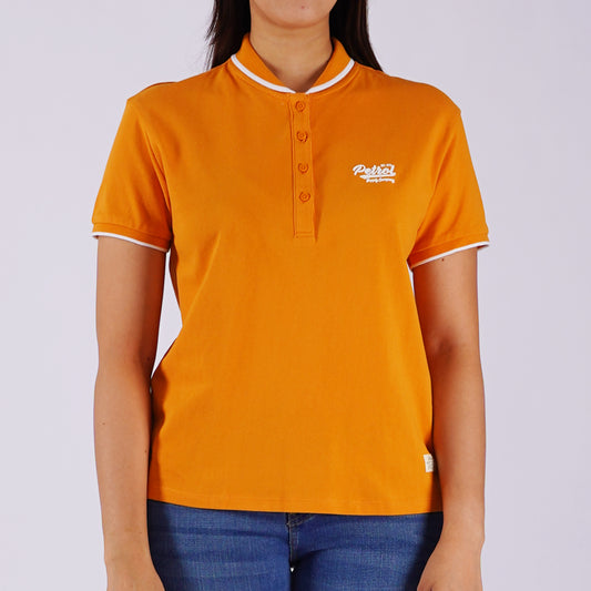 Petrol Ladies Basic Collared Shirt Boxy Fitting Lacoste Fabric 129129 (Canary)