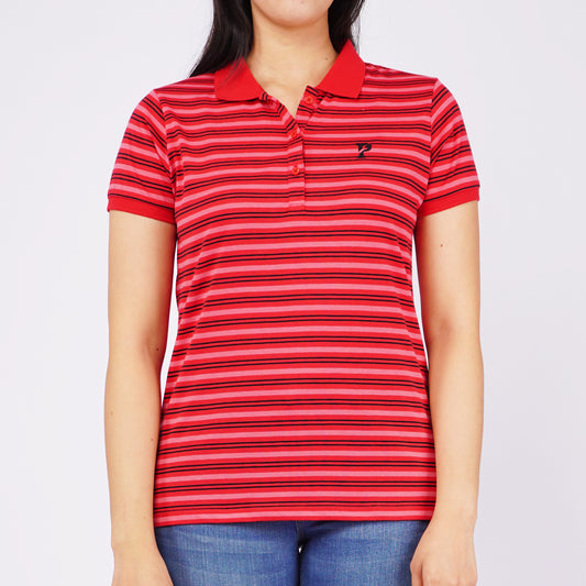 Petrol Ladies Basic Collared Shirt Regular Fitting Stripe Jersey Fabric 115319 (Scarlet)