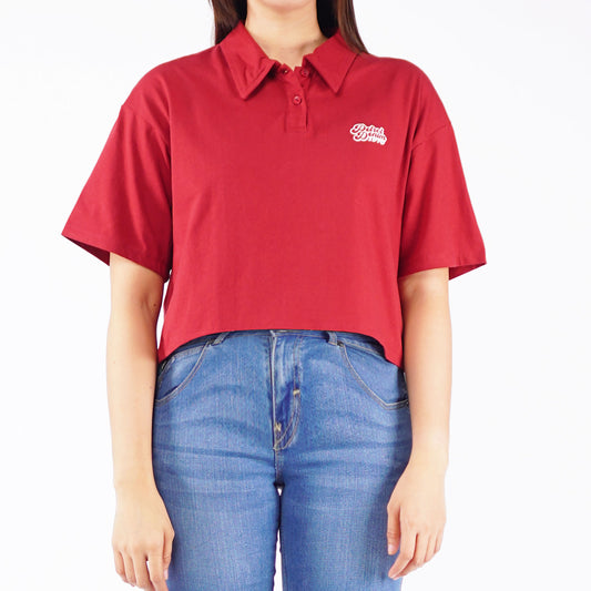 Petrol Ladies Basic Collared Shirt Oversized Fitting Cotton Jersey Fabric 153549 (Crimson)
