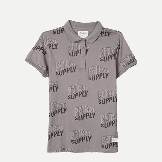 Petrol Basic Collared for Ladies Relaxed Fitting Shirt Trendy fashion Casual Top Gray Polo shirt for Ladies 129334 (Gray)