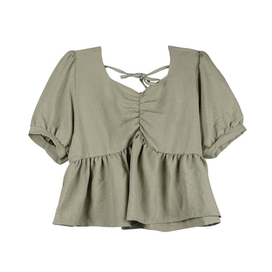 RRJ Ladies Basic Woven Shirt Boxy Fitting Lace Fabric 153506 (Green)