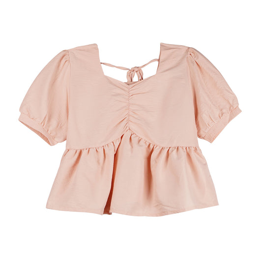 RRJ Ladies Basic Woven Shirt Boxy Fitting Lace Fabric 153506 (Orange)