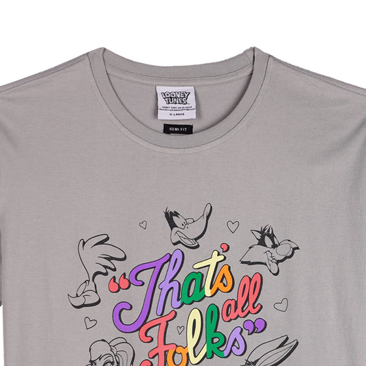 RRJ x Looney Tunes That's All Folks Men's Basic Tees Semibody Fitting CVC Jersey Fabric 150865-U (Light Gray)