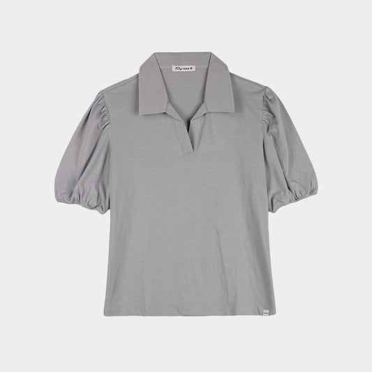 RRJ Ladies Basic Collared Shirt Boxy Fitting CVC Jersey Fabric 151537 (Gray)
