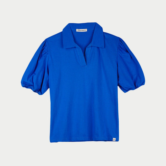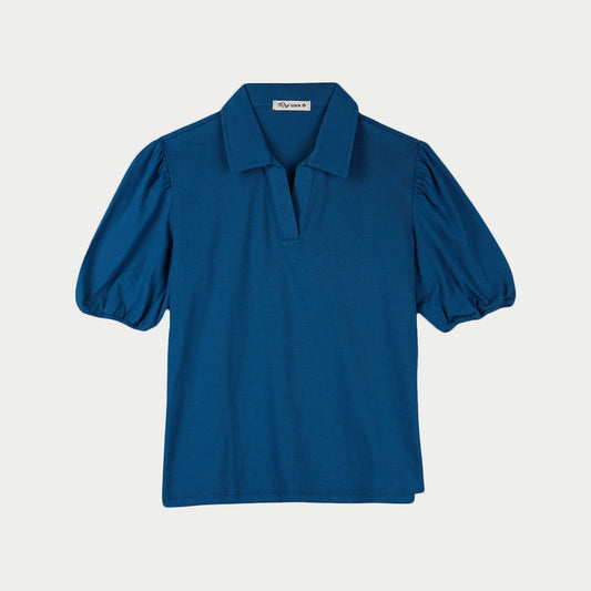 RRJ Ladies Basic Collared Shirt Boxy Fitting CVC Jersey Fabric 151537 (Blue)