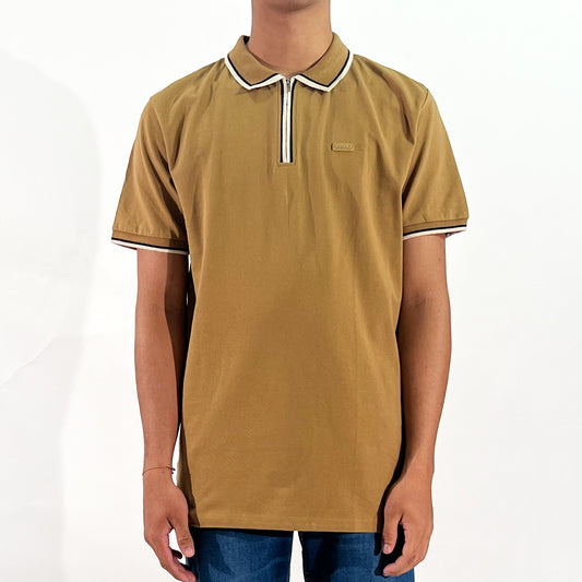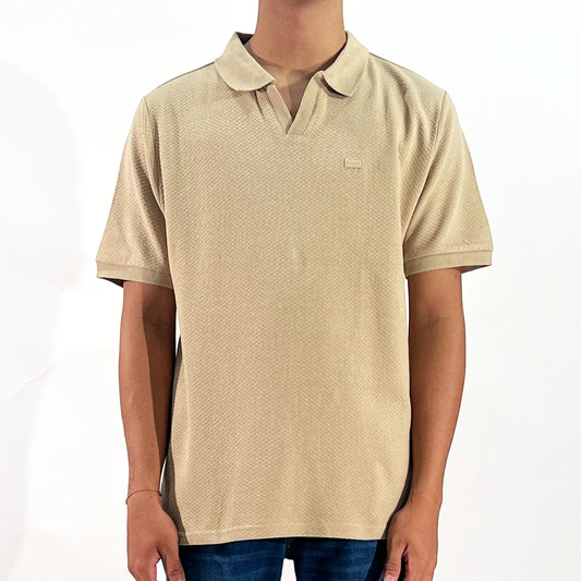 RRJ Men's Basic Collared Shirt Semibody Fitting Special Fabric 169608 (Khaki)