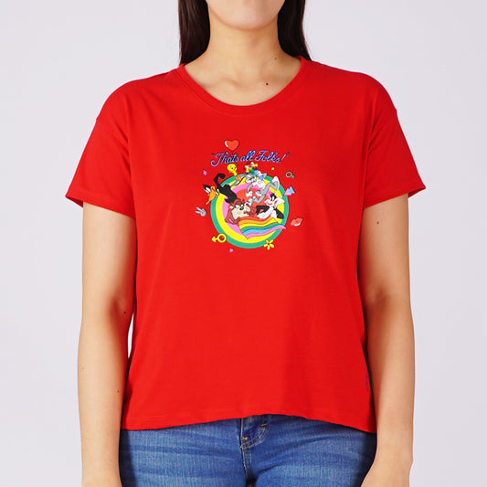 RRJ x Looney Tunes Ladies Basic Tees Boxy Fitting CVC Jersey Fabric 167806-U (Red)