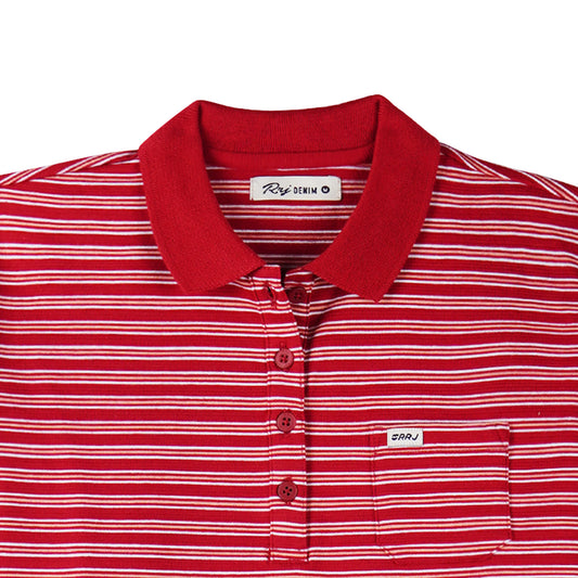 RRJ Ladies Collared Regular Fitting Missed Lycra Fabric 115802 (Red)