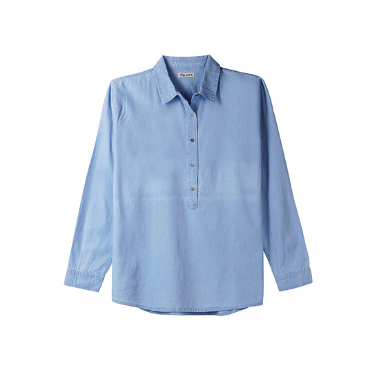 RRJ Ladies Basic Tees Loose Fitting Chambray Tencel Fabric 131818 (Medium Shade)
