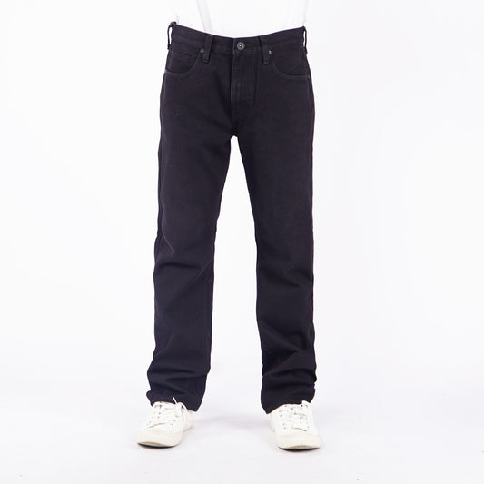RRJ Men's Basic Denim Pants Mid-Rise Slim Straight Fitting Rinse with Details Fabric 167494 (Black)