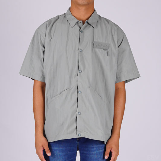 RRJ Men's Basic Woven Shirt Boxy Fitting Taslan Fabric 160614 (Light Gray)
