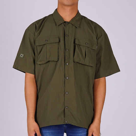 RRJ Men's Basic Woven Shirt Boxy Fitting Taslan Fabric 160597 (Fatigue)